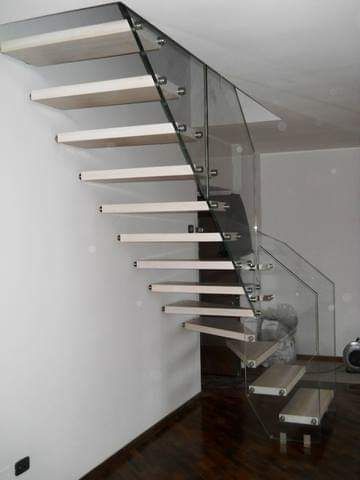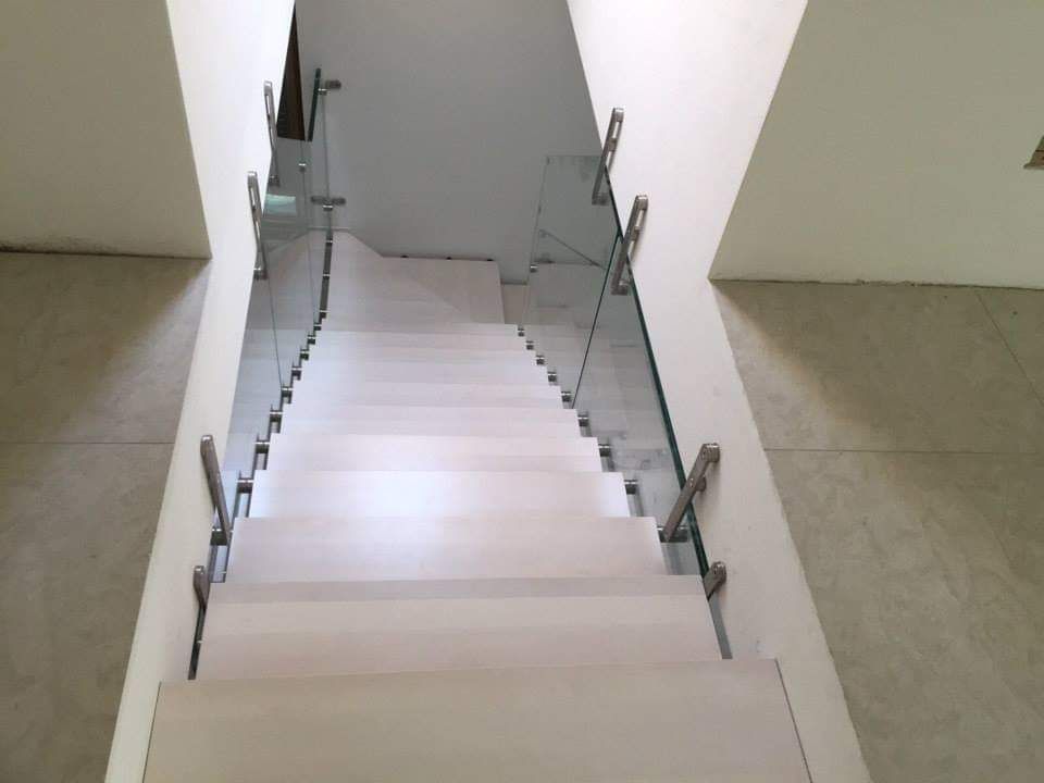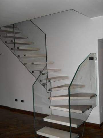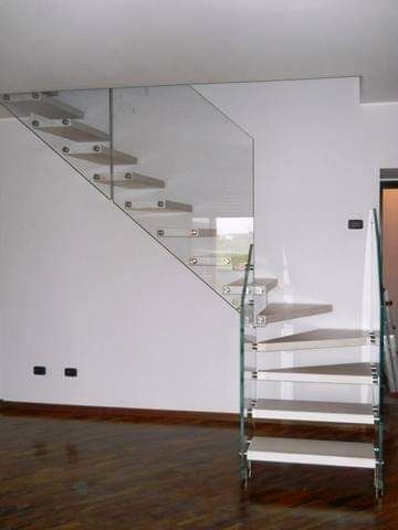 Scala gradino Rovere sbiancato con parapetti portanti in vetro